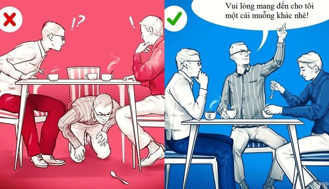 hoặc một cái muỗng, đừng cúi xuống để cố gắng nhặt làm gì. Hãy hỏi người